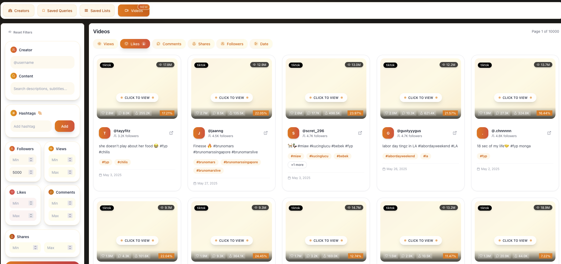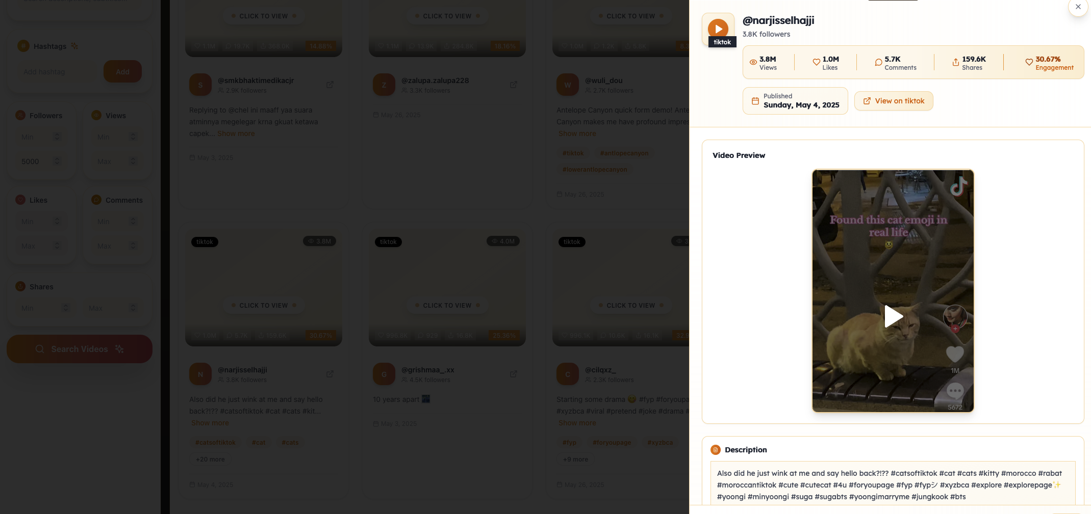 Viral videos database
