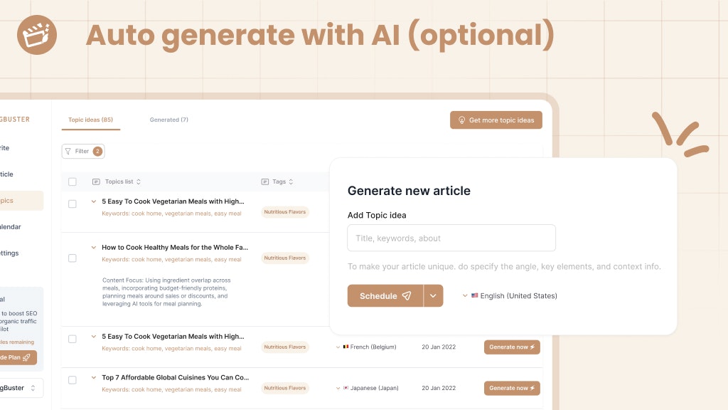 「Blogbuster」は、誰でも簡単に無料でブログを立ち上げられるプラットフォームで、専門的な知識がなくても利用できる点が高く評価されています。ユーザーは、手間なくブログ記事を作成・公開でき、AIツールを後から利用することも可能です。