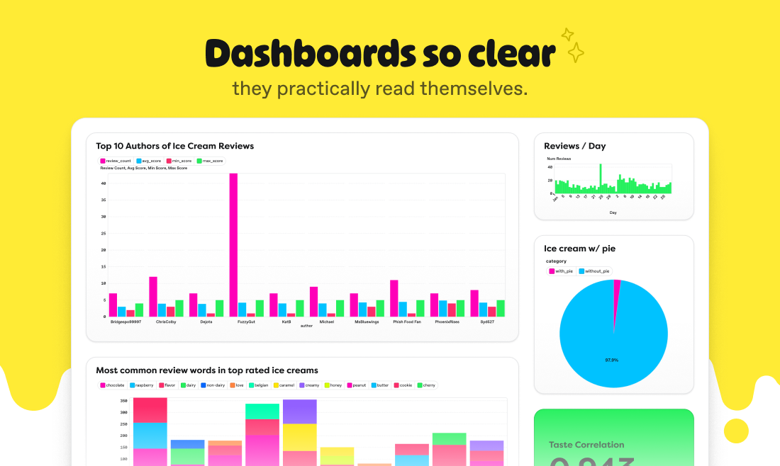 ユーザーからは、DuckDBを利用した軽量なデータスタックが評価されており、接続機能の拡充に期待が寄せられています。また、チームとの連携がスムーズである点も好評です。一部のユーザーは、プロダクトの具体的な使用例やデータスタックの概念についての説明を求めています。