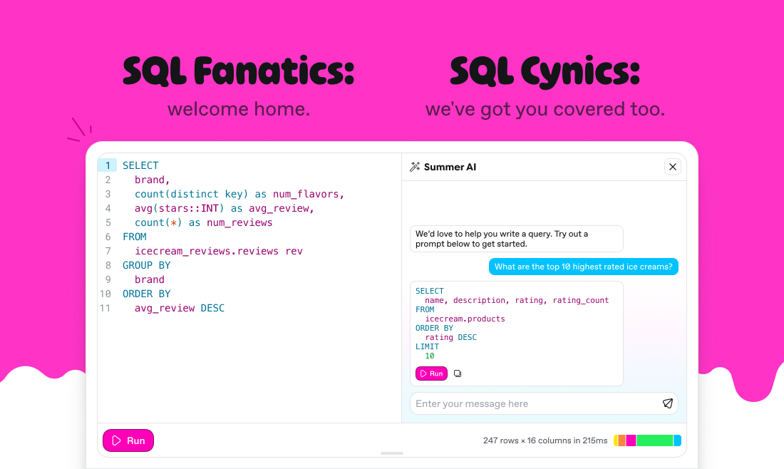 「Summer」は、データ管理を簡素化するために設計されたプロダクトで、ETL機能や迅速なデータウェアハウス、制限のない分析ツールを提供します。