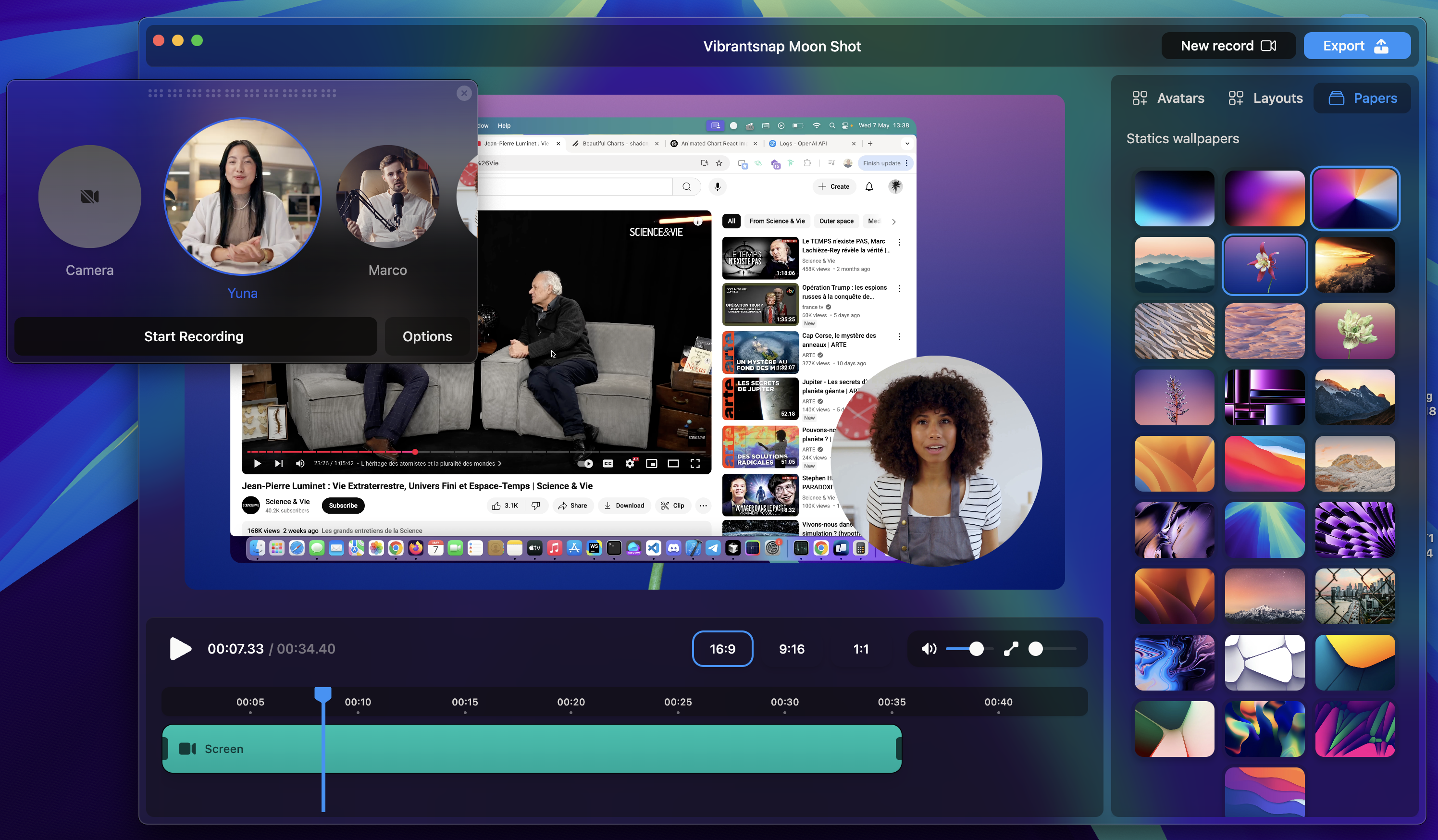 「VibrantSnap」は、動画制作を簡単にするためのツールで、スクリーンショットや録画、AIによる音声クリーニング、アバター生成などが一つのアプリで可能です。これにより、特に小規模な編集者やストリーマーから高い評価を得ています。